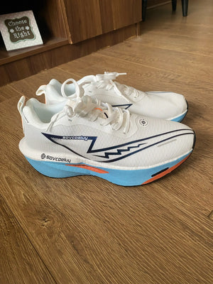 Solid marathon shoe for club runners: reduced fatigue late in races, breathable upper kept feet dry on hot days, and the outsole handled wet roads well :)